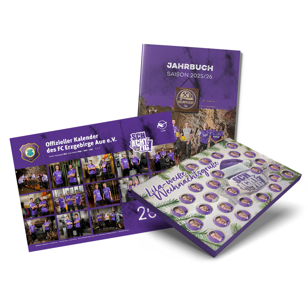 2er Set Textil Wichtel lila/weiß Kantensitzer mit AUE Logo 2-fach sortiert