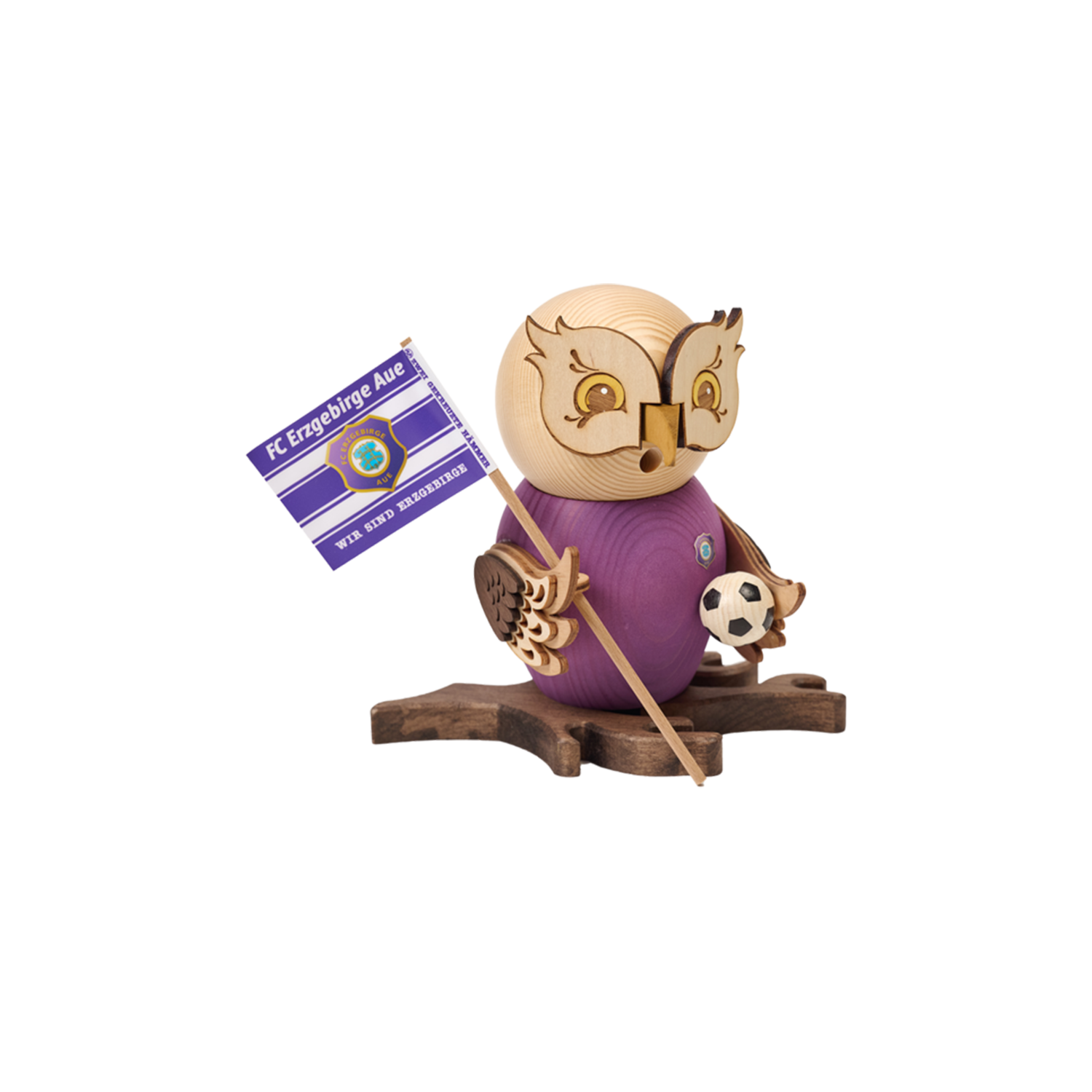 - Körper lila mit Fahne und Fußball, FCE Logo auf der Brust