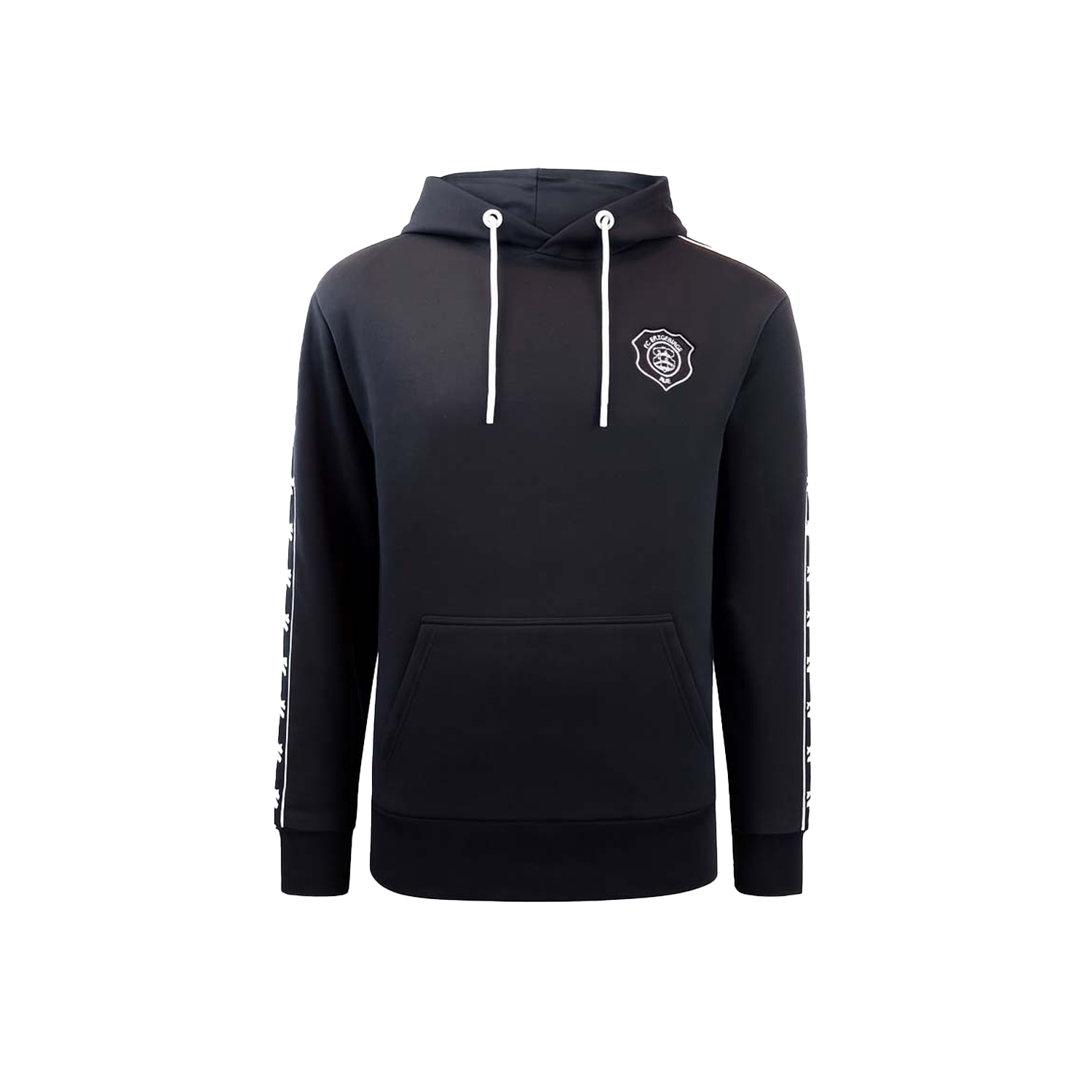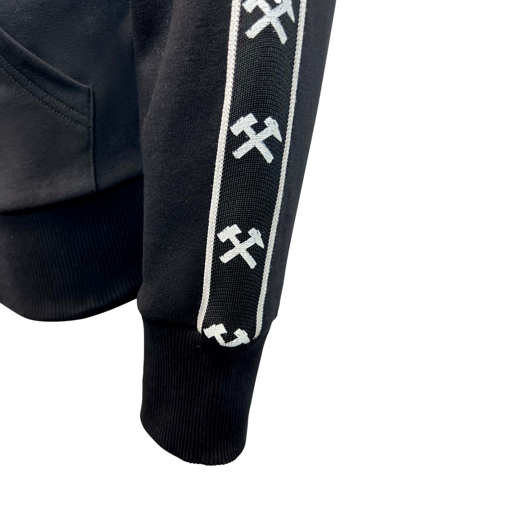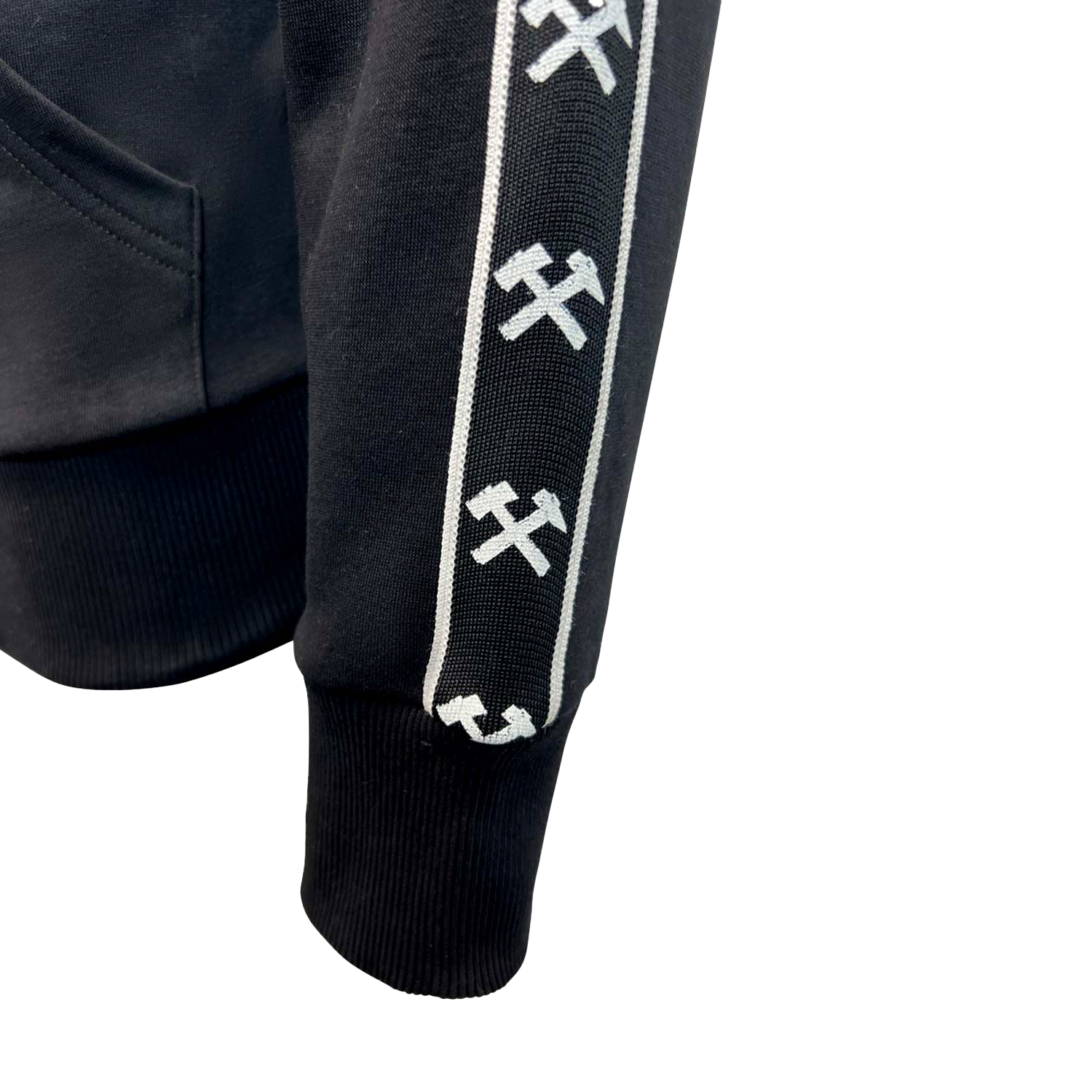 Dieser Hoodie kombiniert klassischen Streetstyle mit einem markanten Detail: dem Rippband und dem Symbol der gekreuzten Hämmer und gesticktem Logo auf der Brust