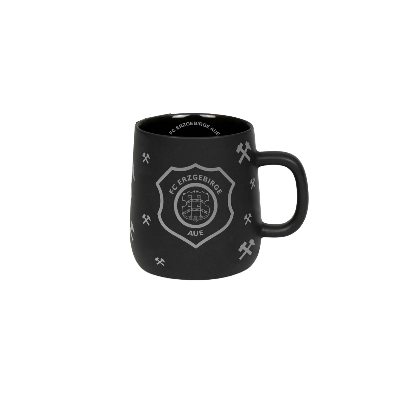 Zeige deine Liebe zum FC Erzgebirge Aue mit Stil! Diese edle, schwarze Tasse begeistert mit einem rundum silbernen FCE-Wappen und den traditionellen Hämmern – ein echtes Highlight für jeden Aue-Fan. Innen rundet der glänzende Schriftzug „FC Erzgebirge Aue“ in Silber das Design perfekt ab.